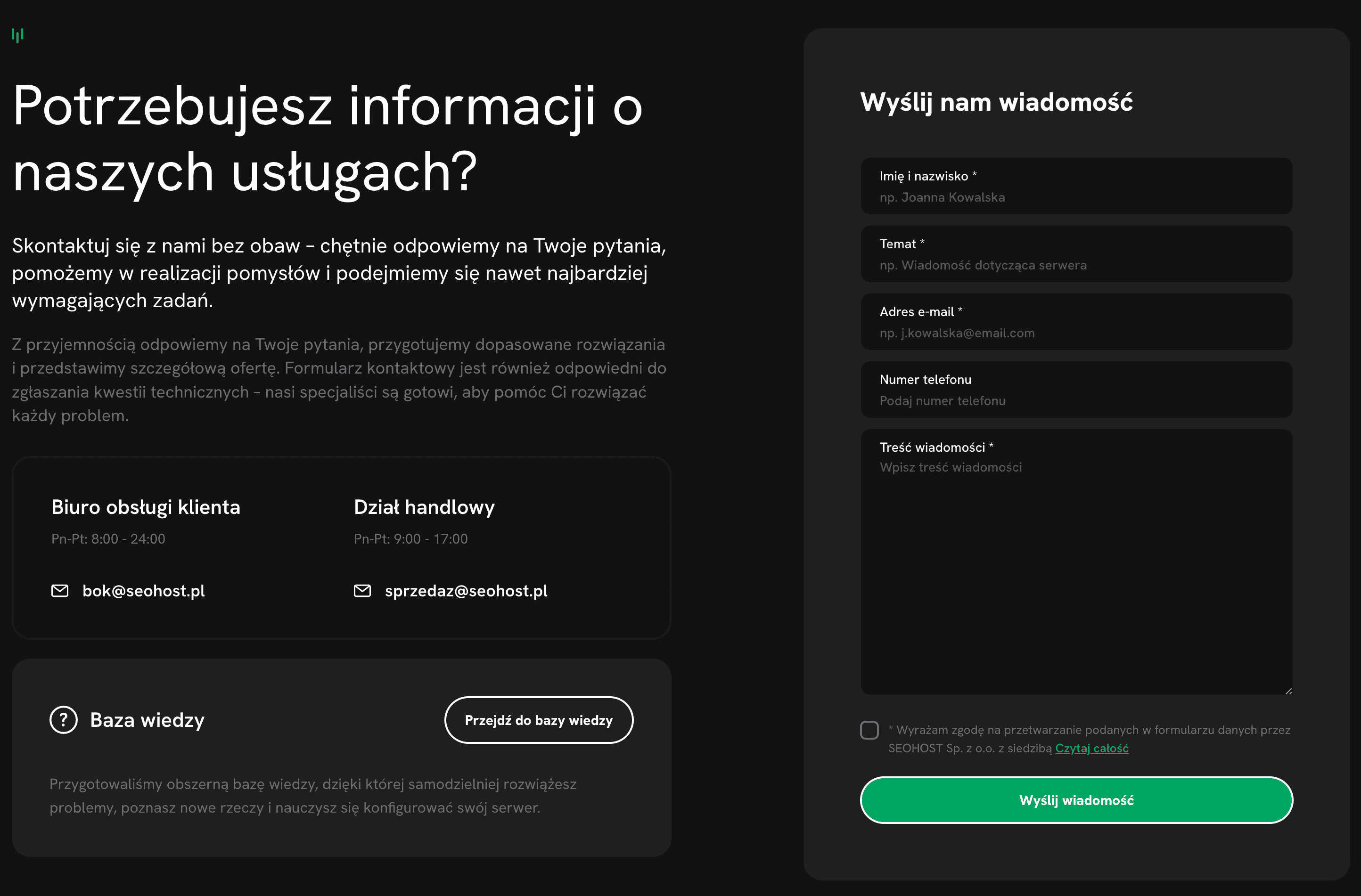 - formularz kontaktowy — seohost.pl/kontakt,